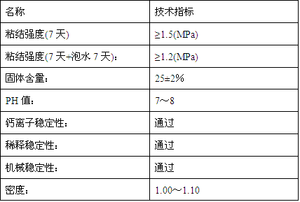 該界面劑是由聚合物乳液與多種助劑配制而成的一種新型水泥與混凝土界面修補材料,與水泥、砂等配合使用。既具有聚合物粘結力強、抗拉、抗彎強度高、抗滲性好等性能,又有水泥能在水或潮濕環境中硬化、硬化收縮小的優點。